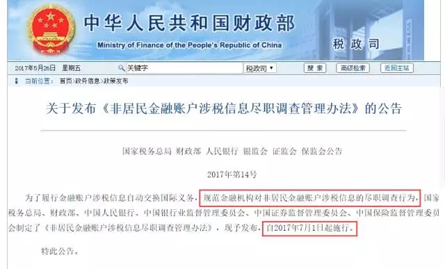 7月1日起,華人海外資產(chǎn)將被清查!PR、TR、留學生皆受影響!關(guān)于中國版CRS,你需要知道這些事!近日,中國國家稅務(wù)總局、財政部、人民銀行、銀監(jiān)會、證監(jiān)會、保監(jiān)會聯(lián)合發(fā)布了《非居民金融賬戶涉稅信息盡職調(diào)查管理辦法》,這就意味著中國版CRS正式落地。