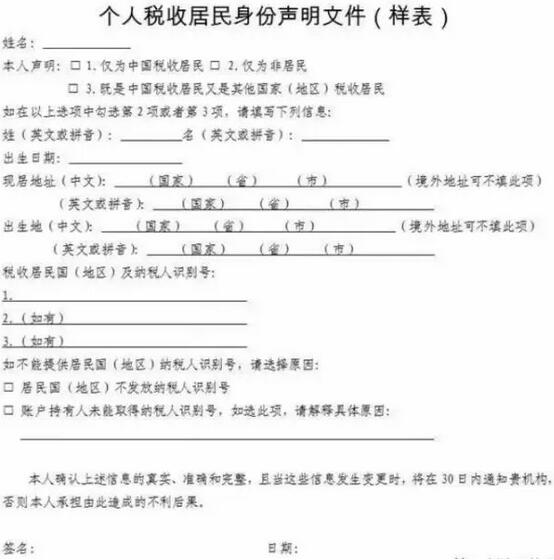 不管是什么或者為什么,反正規(guī)定最后就是要大家開賬戶時提供下面這樣的聲明: